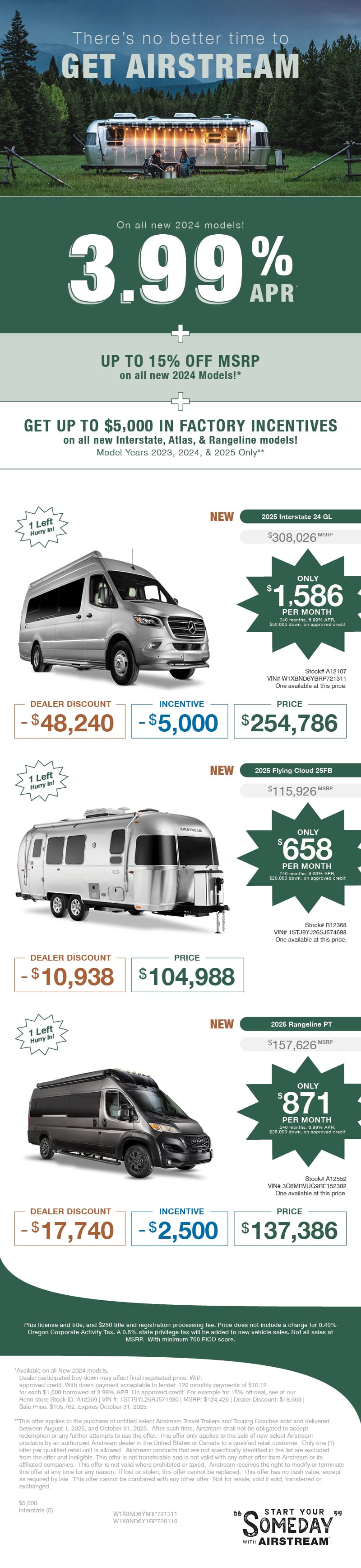 2026 Airstream Atlas 24 The Atlas Touring Coach is our most luxurious touring coach to date. It’s built on the legendary Mercedes-Benz® Sprinter van chassis and inspired by our trailblazing Airstream Interstate series. In fact, with its power slide-out, richly appointed features and finishes, and understated automotive styling from grill to bumper...