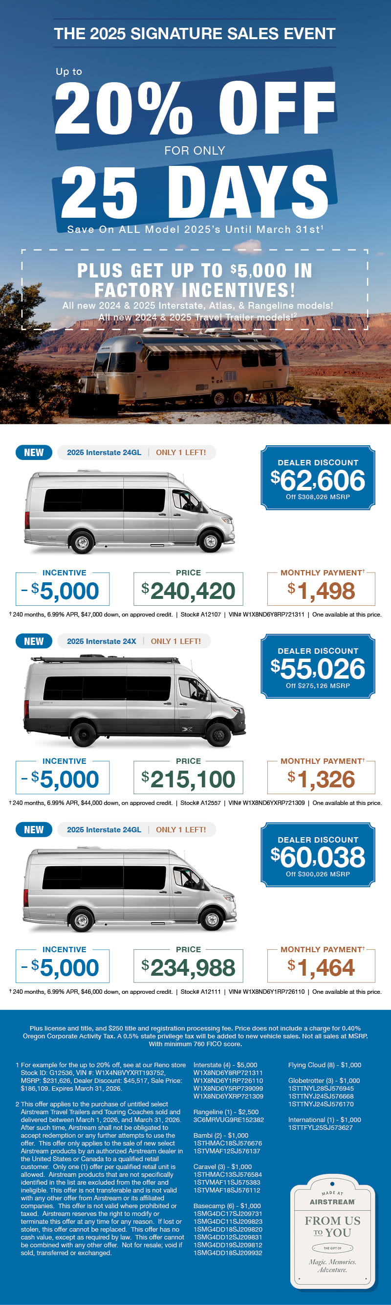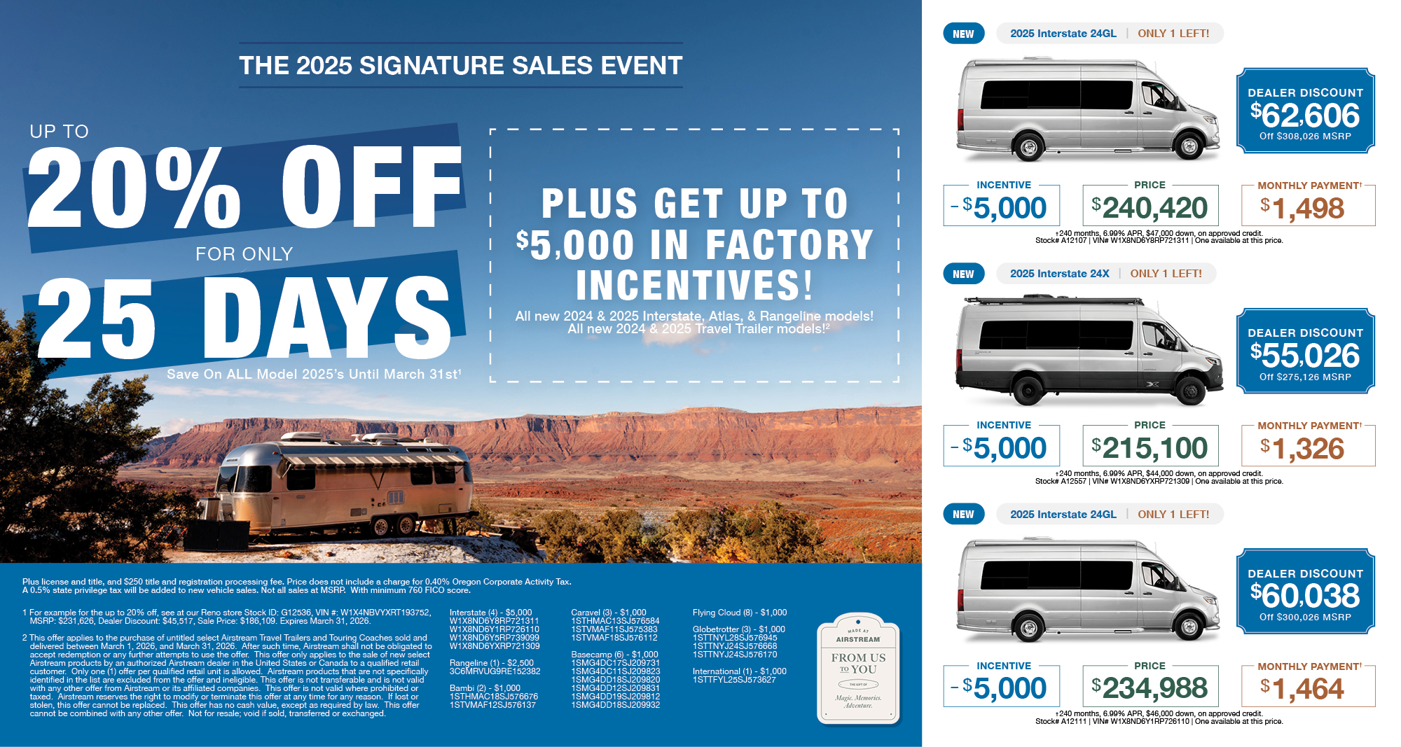 2025 Airstream Interstate 24X The Interstate® 24X is designed for the open road and beyond. This fully loaded adventure van exudes Airstream quality and design with its aggressive stance, extreme comfort, abundant space, cutting-edge amenities, and Best-in-Class safety and performance. Load up, head out, and take your adventures to the next level....