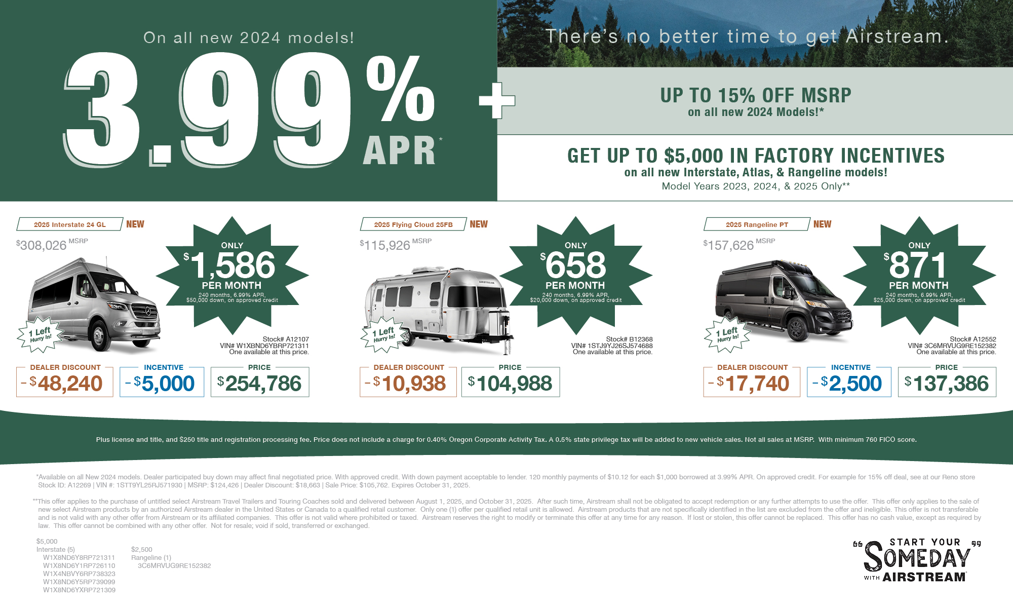 2025 Airstream Interstate 19 The Interstate 19 Touring Coach takes everything that makes the Interstate a stand-out Class B diesel motorhome and wraps it in a smaller, nimbler 19-foot package – one that fits nicely in a standard parking spot. Take off for a solo adventure or get some couple time. Head to the city or the campground. Enjoy every lux...